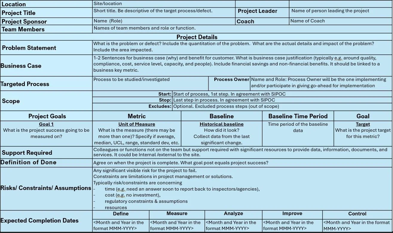 Project Charters include: